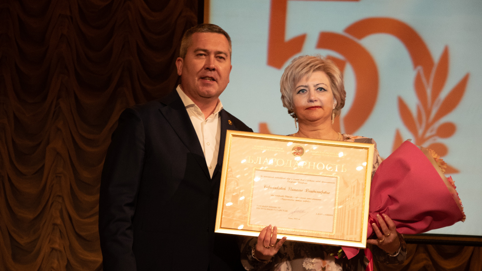 «Спасибо вам за помощь, которую вы оказывали городу во время пандемии коронавируса. И сейчас – за поддержку наших бойцов, участвующих в специальной военной операции. Счастья и благополучия вам и вашим близким! С юбилеем!», - отметил Линар Закиров.