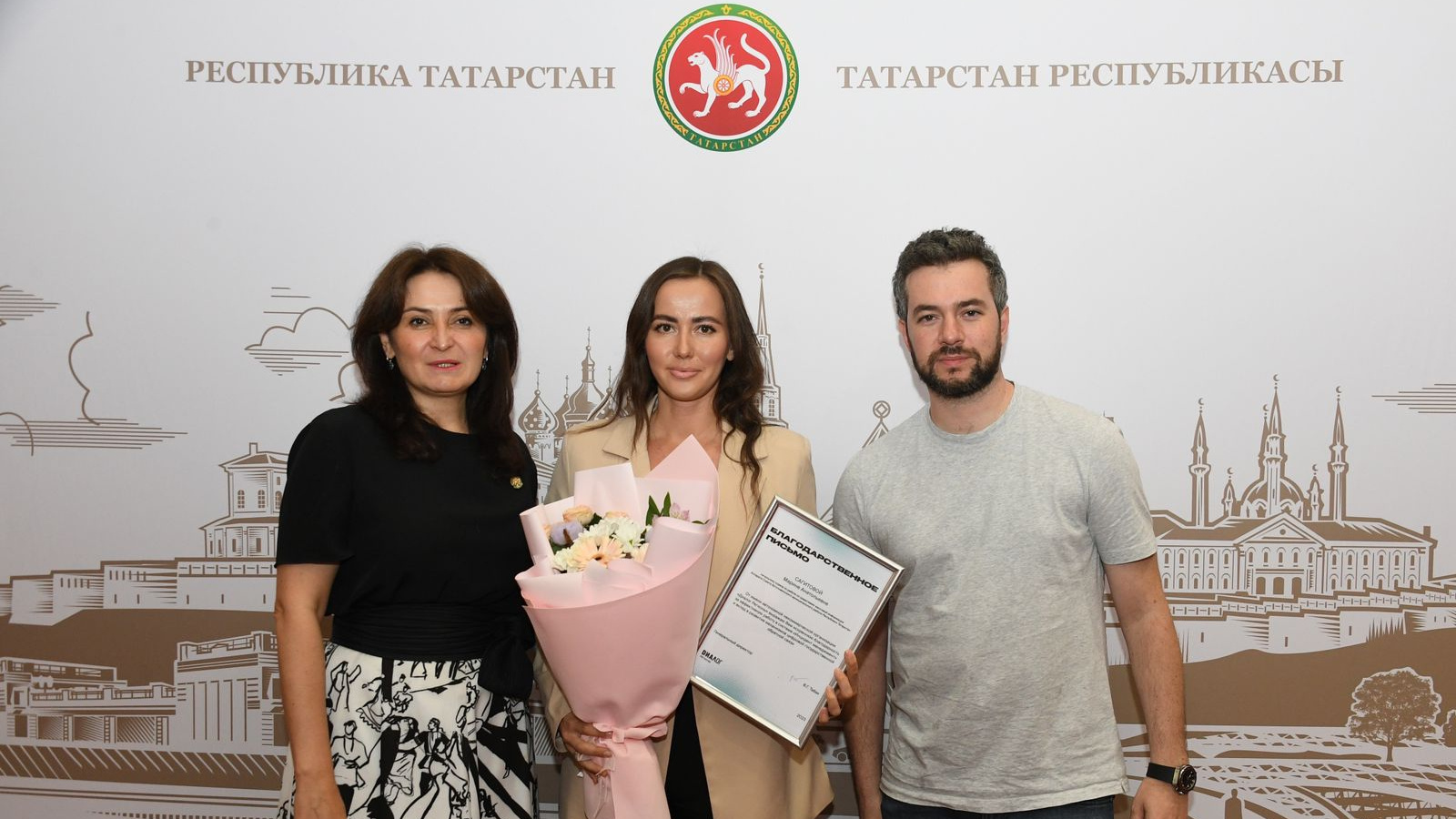 Церемония награждения госслужащих, специалистов по коммуникациям и пресс-секретарей ведомств республики прошла в Кабинете министров Республики Татарстан. Благодарственные письма за активную работу и реализацию социально-значимых проектов и цветы им вручили вице-премьер РТ Лейла Фазлеева и генеральный директор АНО «Диалог» и «Диалог регионы» Владимир Табак. Награду получила начальник отдела по работе со СМИ Аппарата Совета Бугульминского муниципального района Марина Сагитова.
