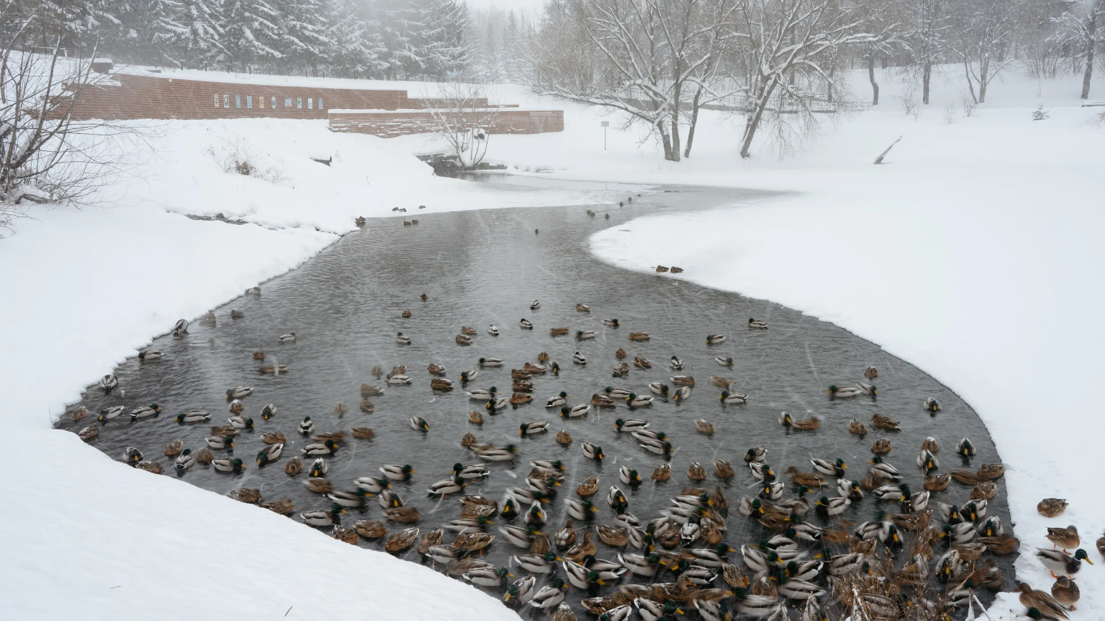 Но почему же ослаб миграционный инстинкт диких уток, и они остались зимовать здесь? Возможно сыграло роль потепление климата или антропогенный фактор, так сказать "городская столовая", и они разучились добывать пищу в дикой природе, где прежде питались водяными водорослями, семенами, мелкими беспозвоночными. Горожане все лето гуляя около водоема подкармливали уток, в основном, хлебом. А хлеб, особенно черный, как и печенье, сладости, сдоба, чипсы и прочая снедь, как и испорченные, заплесневелые продукты, приводят уток к серьезным заболеваниям пищеварения, деформации крыльев, вот и пострадала часть птичьей популяции.