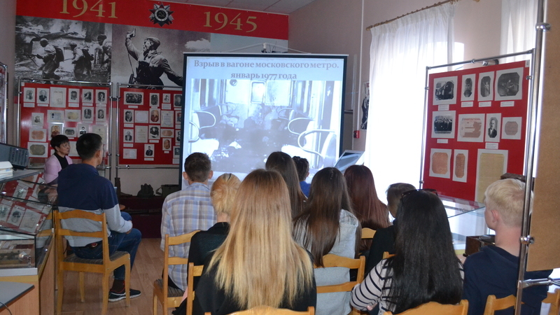 Студентлар белән кем ул террорчы, нәрсә ул террорчылык, безнең илдә булган фаҗигаләр, терракт янаган очракта үзеңне ничек тотарга кирәклеге хакында сөйләштеләр. “Город Ангелов”, “3 сентябя – День солидарности в борьбе с терроризмом” видеоклиплары күрсәтелде. Майкл Джексонның – “Песня Земли” һәм Юлия Чичерина башкаруында “Пожалуйста, пусть больше никто никогда не умрет” җырлары яңгырады. Чара азагында яшьләргә әлеге темага кагылган белешмәлекләр таратылды.
