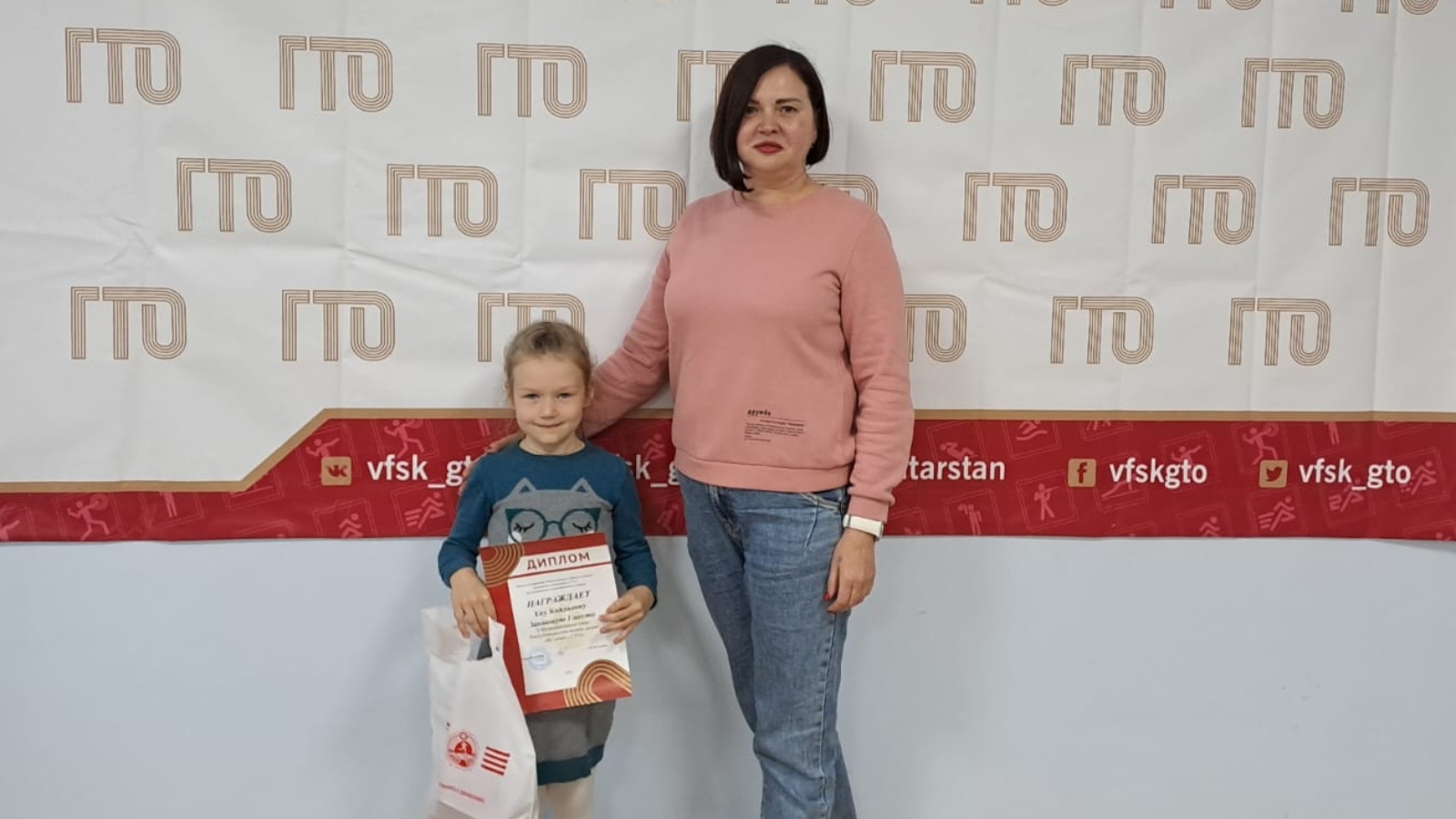 Яшь Ева Кайдалова ГТО символикасы төшерелгән диплом һәм сувенир продукциясе белән бүләкләнде.