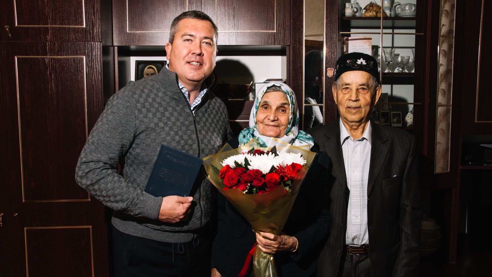 Линар Закиров көмеш яшьтәге парларга бүләкләр тапшырды. Алар белән әңгәмә вакытында муниципалитет башлыгы сәламәтлек, яшәү шартлары турында сорады, озын, бәхетле һәм сәламәт гомер теләде.