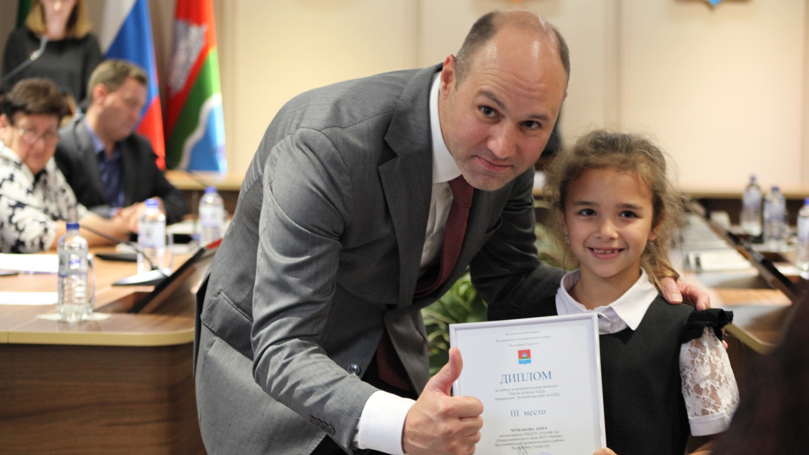 Балалар юл-транспорт травматизмын профилактикалау буенча видеороликлар сериясе өчен район башкарма комитеты җитәкчесенең Рәхмәт хаты белән «Мамина» киностудиясен - җитәкчесе Светлана Фәхриеваны бүләкләделәр.